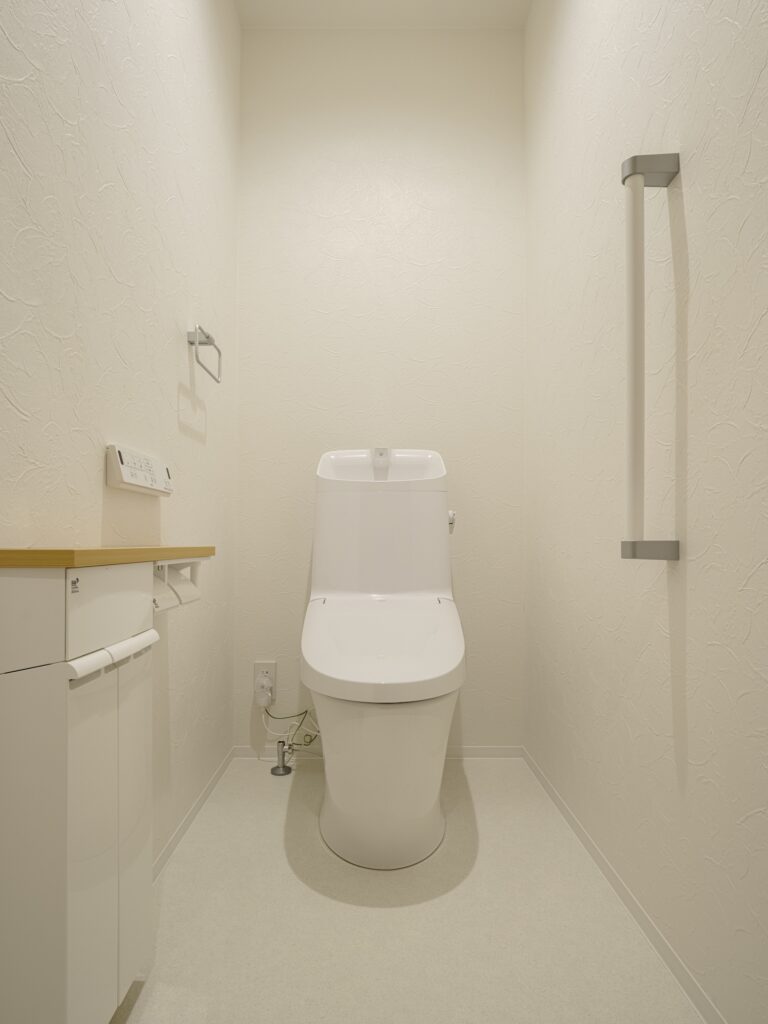1階には2か所のトイレを設け、どの部屋からもアクセスしやすい配置に。それぞれの空間は限られた面積の中でもゆとりを感じられるよう、照明や素材選びにもこだわった。