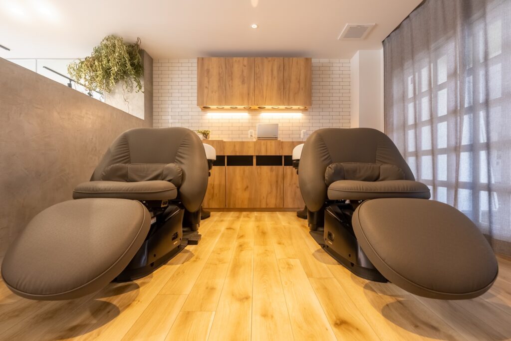 出来上がったのは、昼間は大きなガラスから自然光が差し込み、夜は照明の明かりが柔らかく漏れる落ち着いた空間。静かで心地よいプライベートサロンが完成した。