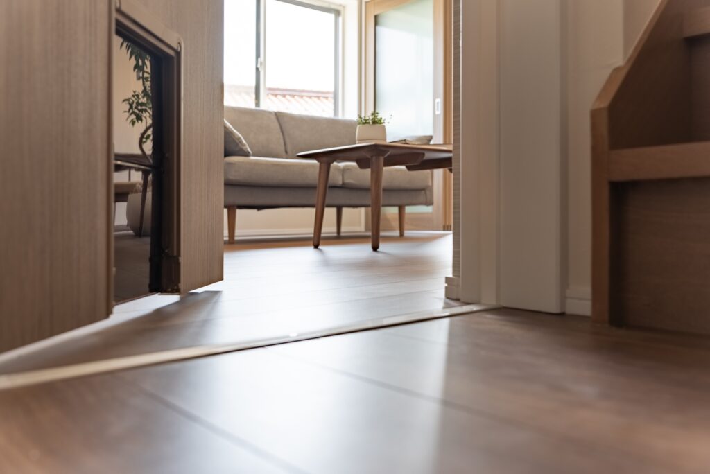 民宿から、暮らしの空間へ。落ち着きのあるカラーの床材を使った、快適でシックな空間